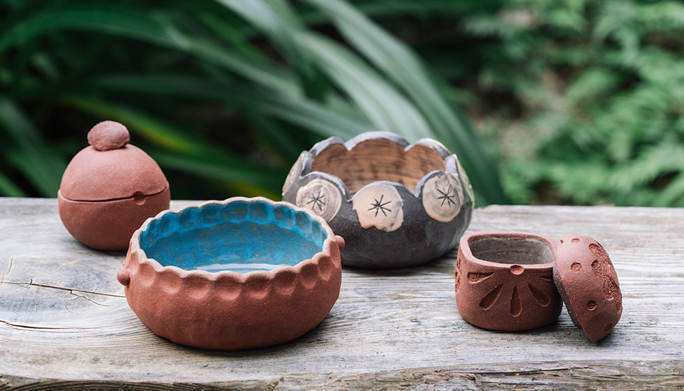 Using Okinawan clay, you will shape a lidded vessel. Personalize your piece by carving your name or a design of your choice to complete your creation.