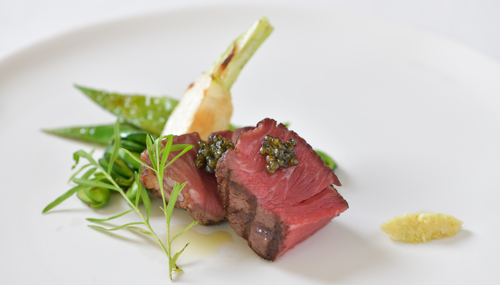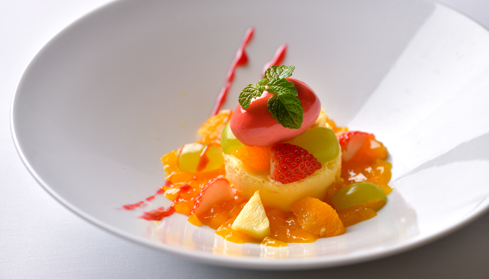 A course dinner that welcomes the arrival of summer, featuring aromatic herbs and vegetables harvested from Our Farm, layered with carefully selected Okinawan ingredients. An opening dish of naturally cultivated cherry tomatoes—rich with concentrated sweetness—and seika squid announces the season in a cool, refreshing presentation. Kuruma prawn soup and grilled Wagyu fillet follow, their flavors elevated by vibrant green herbal aromas. Finished tableside with a fragrant flourish, this early-summer offering invites you to savor the season through all five senses.