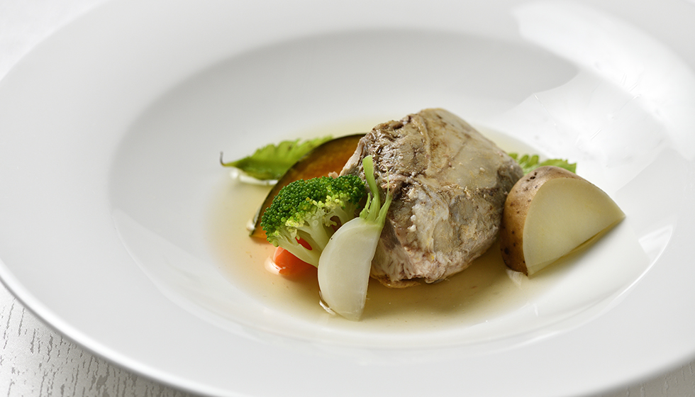 We invite you to enjoy a semi-buffet lunch featuring a delightful selection of appetizers, salads, and desserts from our buffet. Choose a daily soup or pasta, and select one main dish from a variety of options, including fish and meat dishes, all freshly prepared and served at your table. Savor an elegant lunch while overlooking the lush greenery of our courtyard.