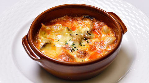 たっぷりのキノコをホワイトクリームでじっくり煮込んで、食欲そそるカレー風味に仕上げたラザニアです。