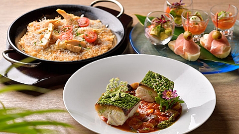 ザ・ナハテラスのレストラン「ファヌアン」では、姉妹ホテルの自家農園産の新鮮な野菜やハーブ、県産食材を織り交ぜながらシェフが仕立てる創作フレンチと共に、シニアソムリエ・比嘉 睦がその一皿に最適なワインをセレクトしたペアリングディナーイベントを開催いたします。