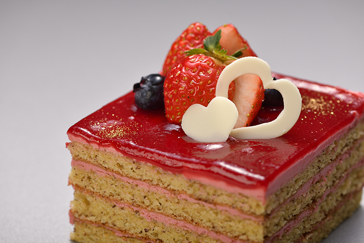 ホワイトデーに、1~2名様に最適な3号サイズ(9cm角)のスクエアケーキをご用意しました。ヘーゼルナッツをたっぷりと使った香ばしいジョコンド生地と、フルーティーながらもコクのあるフランボワーズのバタークリームを交互にサンドし4層に重ねた贅沢な仕上がりです。一つひとつの素材にこだわり心をこめて作りあげるスイーツは、日頃の感謝を添えた贈り物にもおすすめです。