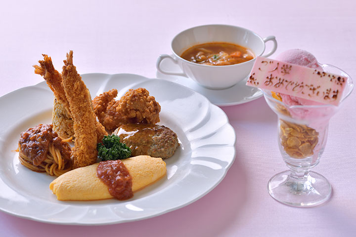 この日、新小学一年生となったお子様へお祝いの心をこめて、ホテルシェフが腕を振るうオムレツやハンバーグ、海老フライなどを取り合わせたお子様向けのメインディッシュをご用意いたします。大人のお客様同様にプレートに盛り付けたプレゼンテーションで、普段とは違った雰囲気や成長を感じる記念の日をお過ごしください。