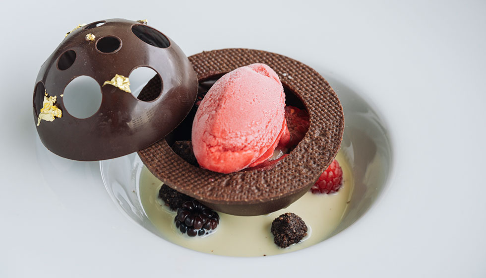 ザ・テラスホテルズでは、2010年よりフランス・コルシカ島にあるミシュランキー※ホテル「グランドホテル ドゥ カラロッサ」(以下、カラロッサ)と、シェフを中心とした人的・文化的交流を継続しております。カラロッサのシェフ、パスカル・カイヨー氏が監修し、2026年2月に開催された賞味会で提供した特別ディナーより、ザ・ナハテラスでは、特別な4皿をアラカルトメニューとしてご提供いたします。ナッツや根菜の風味をはじめ、素材の持ち味を活かし、クラシックな技法を現代風にアレンジした料理に、姉妹ホテルの自家農園「Our Farm」の野菜を取り入れ、この土地ならではのエッセンスを添えています。テラスに薫る、フランス・コルシカ島の風をお楽しみください。