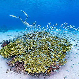 クルーザーに設置されたサウナで汗を流した後、そのまま青い海へダイブしたり、子育てのために沖縄近海にやってくるザトウクジラを観察したり。南国・沖縄の、冬でも暖かな気候を生かしたクルージングメニューをご体感ください。
