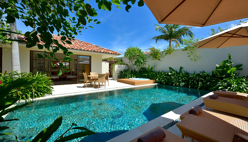 読谷村の海辺に佇む「ジ・ウザテラス ビーチクラブヴィラズ」。
